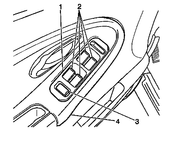 POWER DOOR LOCKS DESCRIPTION AND OPERATIONThe DOOR LOCK switch (3) is located within the master switch (1) on the left front door trim panel (4).
