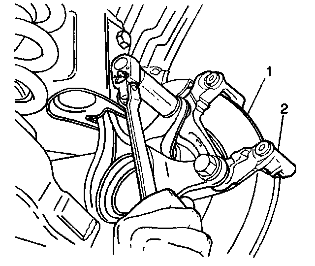 2. Remove the 2 mounting bolts and the caliper bracket (2) from the vehicle.