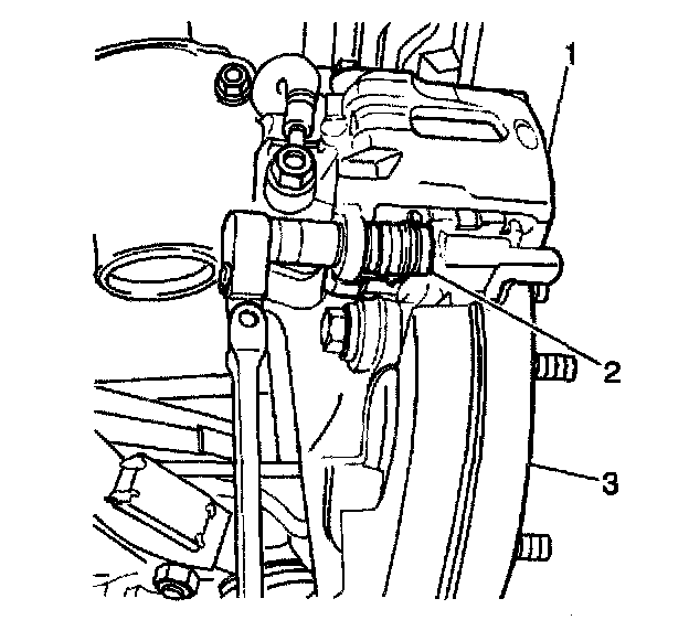 Notice: Do not allow the brake components to hang from the flexible brake hoses. Damage to the brake hoses could result.