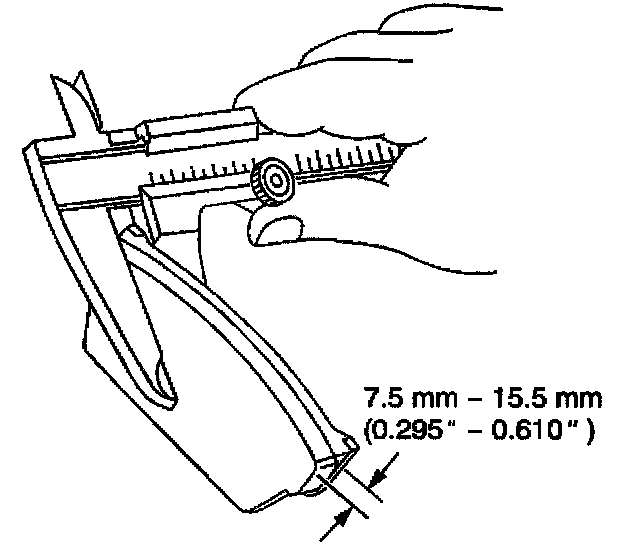 1. Measure the brake pads. Specification The minimum thickness of the pad and the plate is 7.5 mm (0.295 inch).