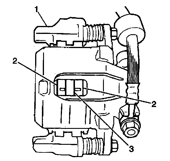 Notice: Do not allow the brake components to hang from the flexible brake hoses. Damage to the brake hoses could result.
