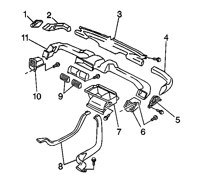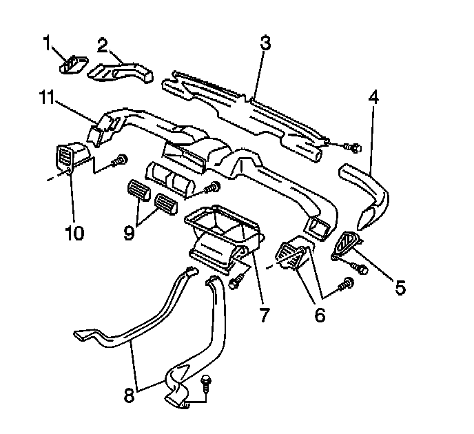 2. Remove the 1 screw and the center air distributor duct (7).
