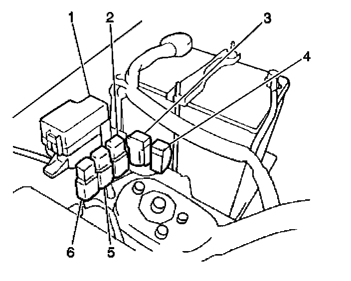 1. Remove the compressor relay (2) from the fuse box mounting bracket.