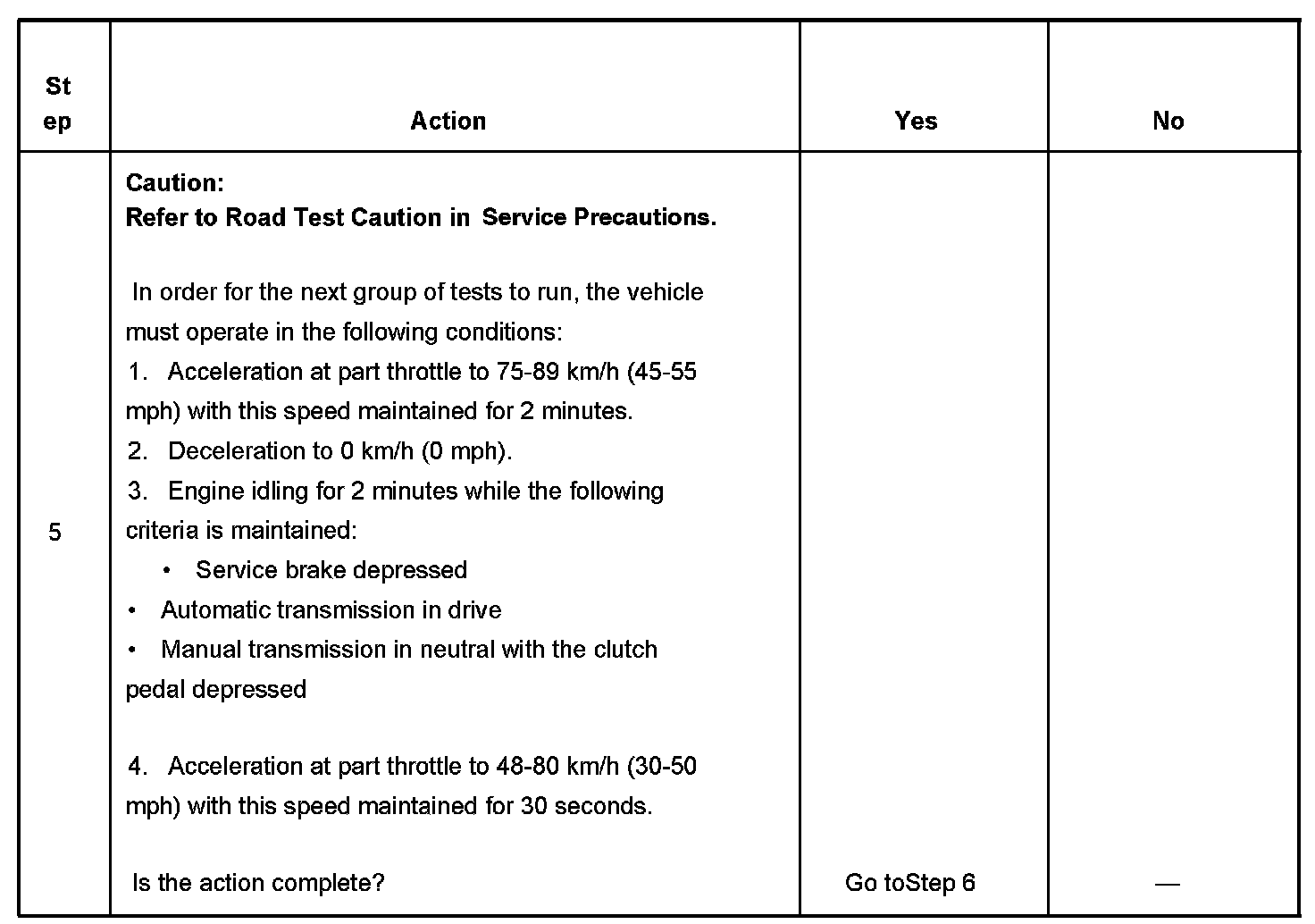 5. This step is to run the Oxygen Sensor Tests. These tests run during the idle period immediately following a cruise period that meets a minimum calibrated RPM and time period.