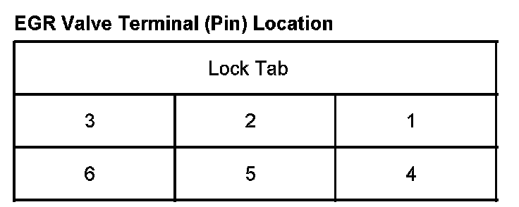 Use the table in order to locate the correct terminals to test during diagnosis. The table layout corresponds to the pin location of the EGR valve electrical terminals.