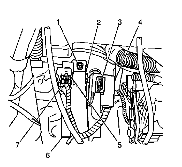 1. Install the DRL control module (4) to the vehicle. Secure the module with the mounting bolt.