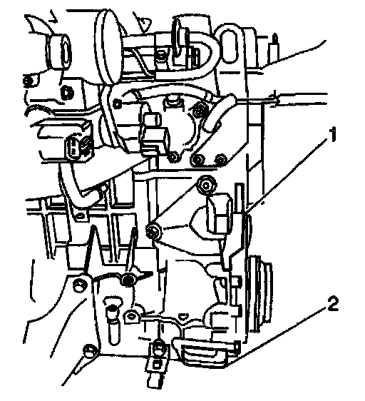 2. Install the lower generator bracket (2) to the vehicle. Secure with the 2 bolts.