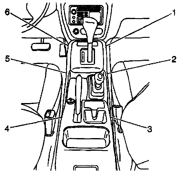 12. Secure the console box with 2 plastic retaining clips (2,5) and 4 screws (1,6,3,4).