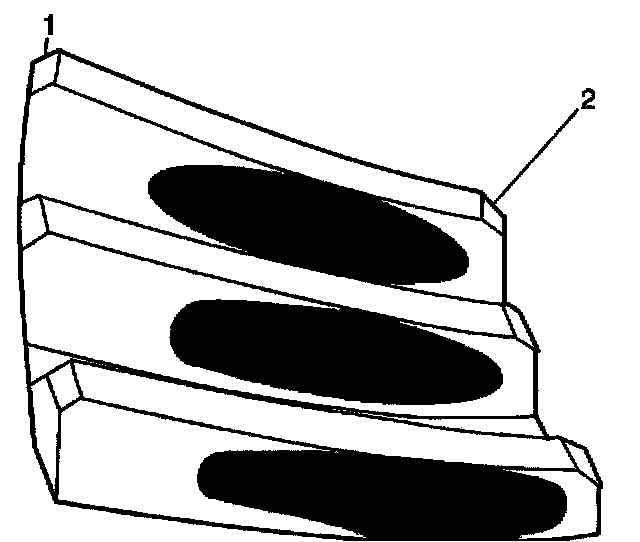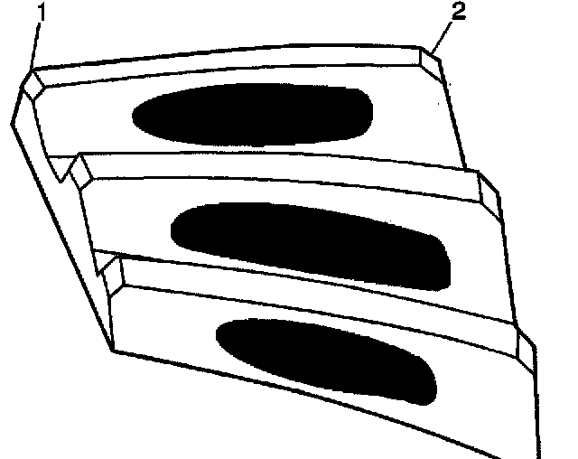 1. Inspect the drive side (2) of the ring gear teeth (concave) and the coast side (1) of the ring gear teeth (convex).