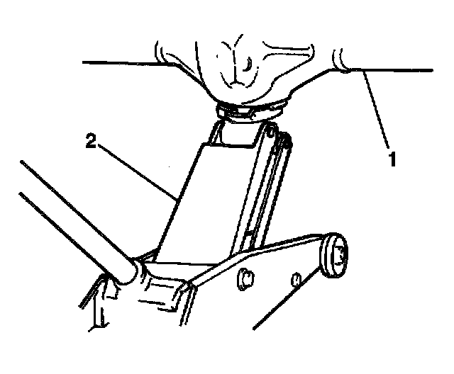 12. Support the rear axle housing (1) with a suitable hydraulic floor jack (2).