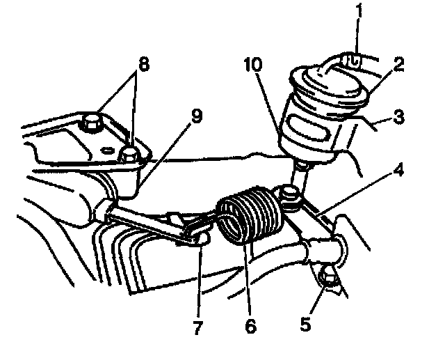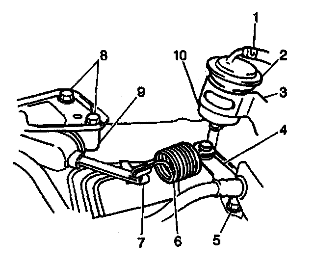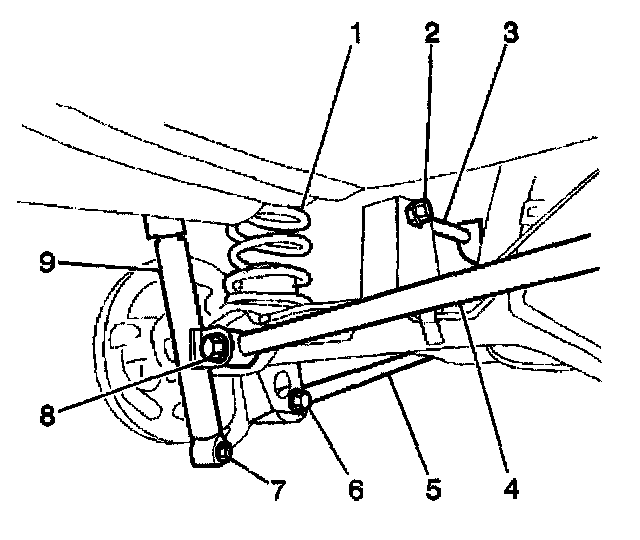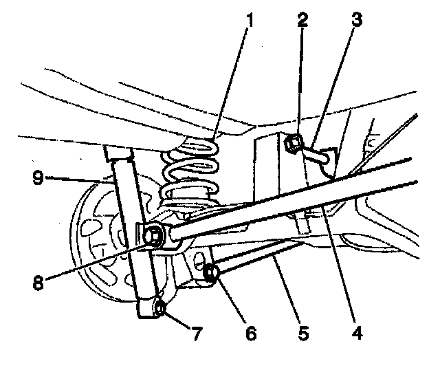 Caution: To prevent personal injury and/or component damage, make sure the coil spring is properly seated and use the proper tools to install the lower control arm to the vehicle. The coil spring is under extreme pressure and can become a projectile should the spring separate from the lower control arm before the lower control arm is secured to the vehicle.