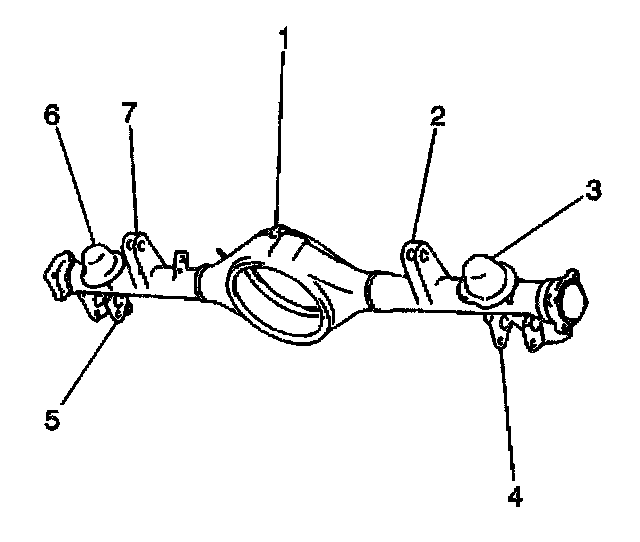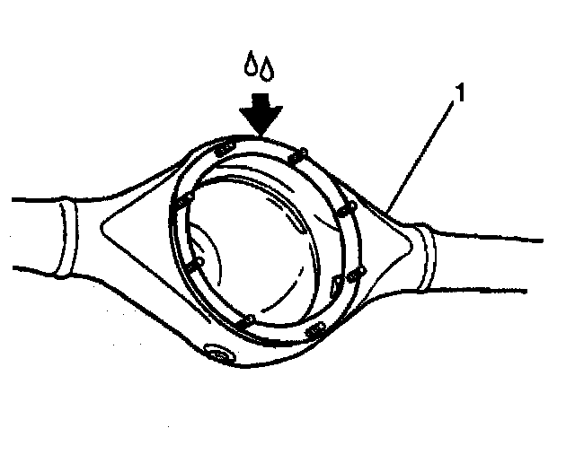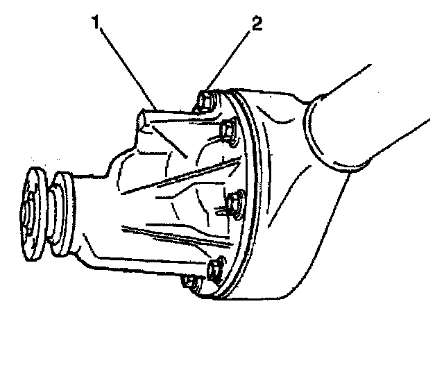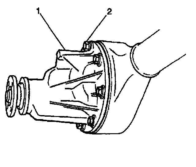16. Apply RTV silicone gasket and sealer GM P/N 12346240 (Canadian P/N 10953493), or equivalent, to the differential carrier mating surface on the rear axle housing (1).