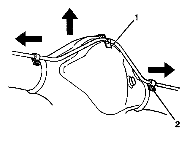 9. Install the brake fluid pipes (2) to the rear axle housing.