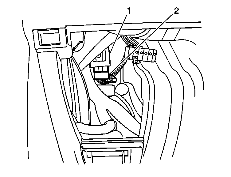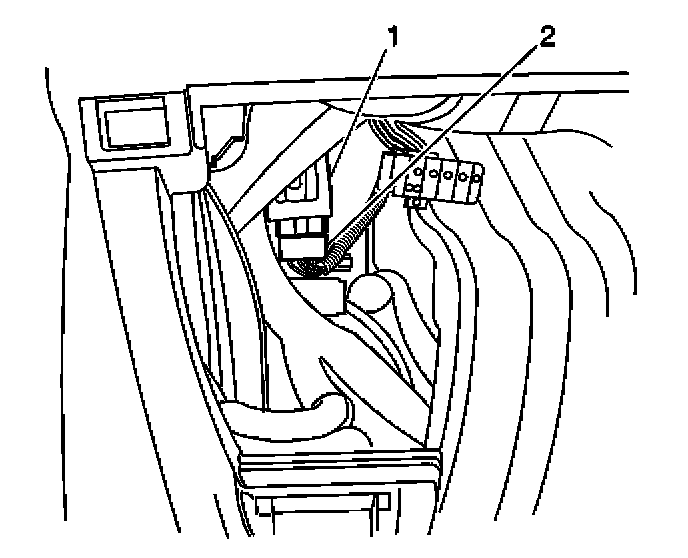 2. Disconnect the rear window defogger relay electrical connector (2).