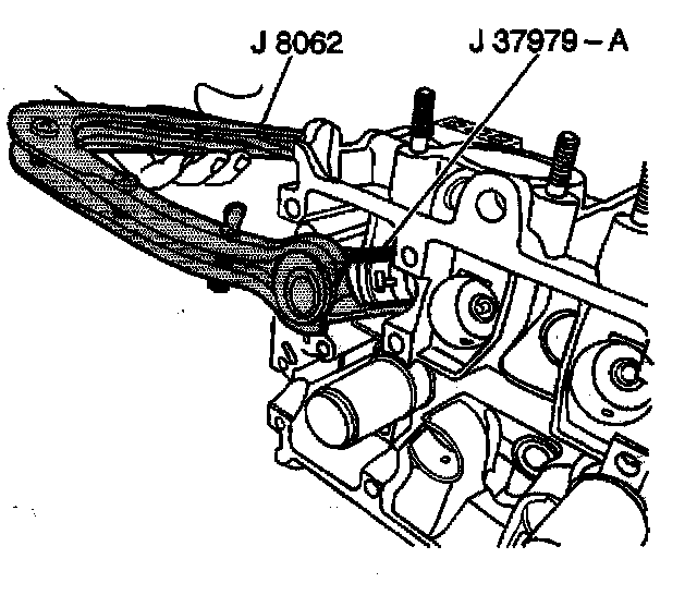 2. Compress the valve spring using the J 8062 and the J 37979.