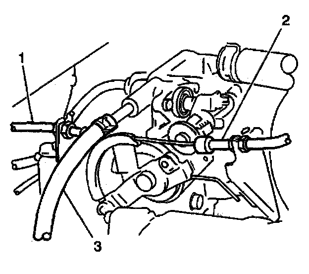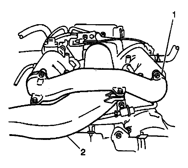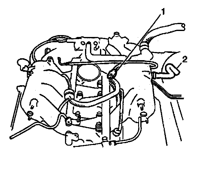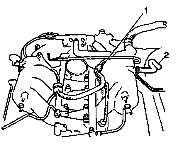 19. Disconnect the hose (2) from the idle air control (IAC) valve.