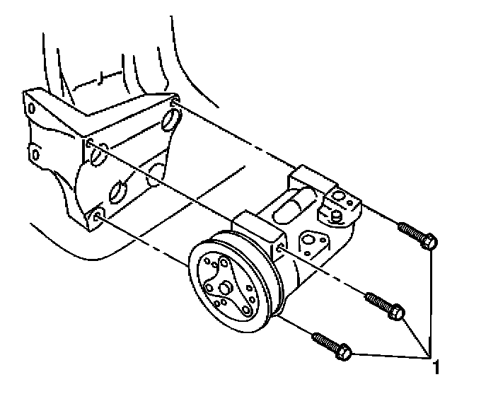6. Remove the 3 bolts (1) that secure the A/C compressor and position the compressor aside.