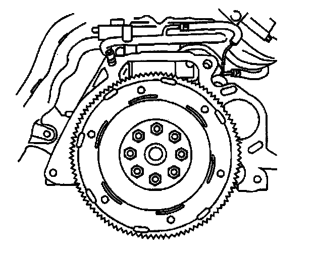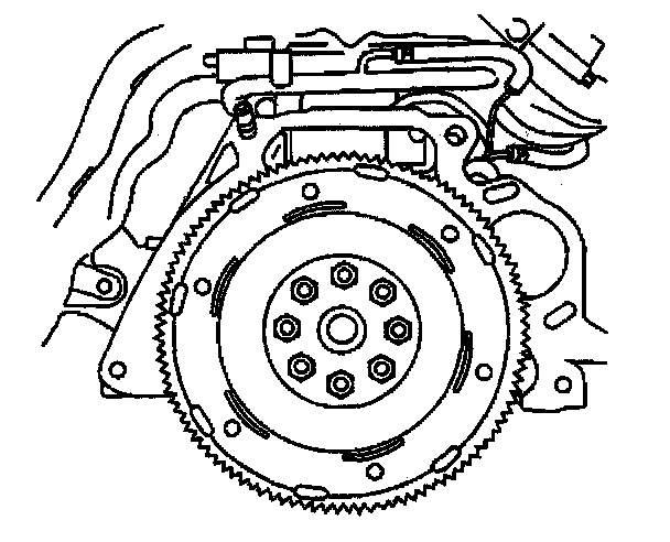 2. Apply GM P/N 12345493, or the equivalent, to the flywheel retaining bolt threads.