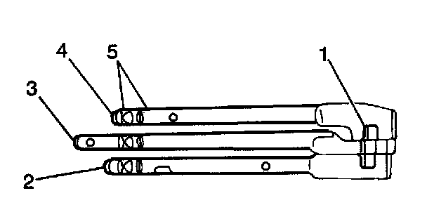 1. Install the reverse gearshift fork (4) to the reverse gearshift shaft (5). Use the reverse gearshift fork roll pin (3) in order to secure the reverse gearshift fork to the reverse gearshift shaft.