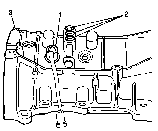 Important: The reverse gearshift fork roll pin (3) is 5 mm (0.187 inch) longer than the low speed gearshift fork roll pin (2) and the high speed gearshift fork roll pin (1).