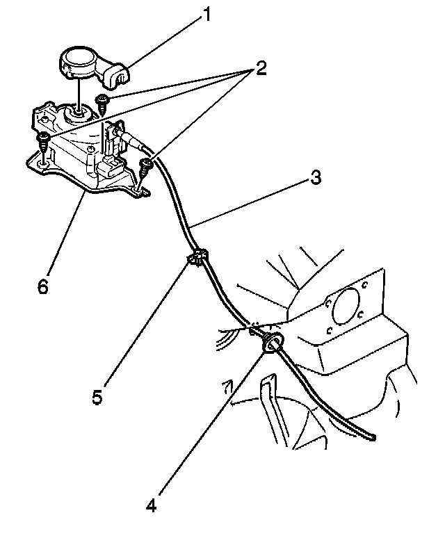 3. Remove the cruise control servo cable (3) from the cruise control servo assembly (1).