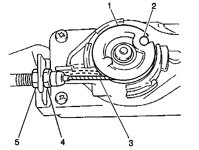 5. Adjust the cruise control servo cable locknut (5) in order to adjust the cruise control cable play.
