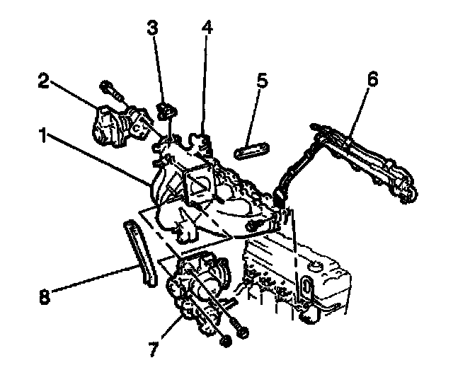 6. Install the fuel line bracket (9).to the intake manifold. Secure with 1 bolt.