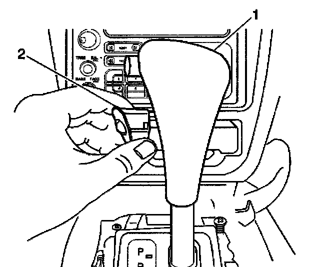 6. Gently pull the knob assembly (1 ) in order to ensure that the OD switch (2) wire harness does not catch.