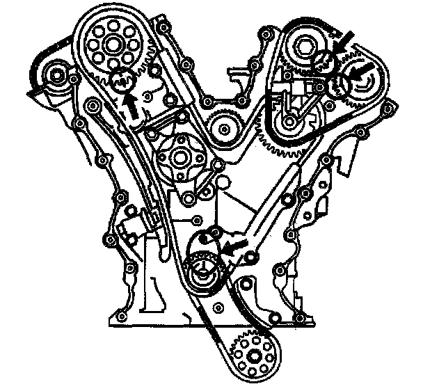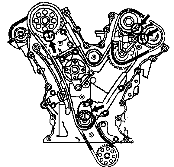 Important: The timing marks must be correctly aligned before disassembly, in order to correctly install the timing chains.