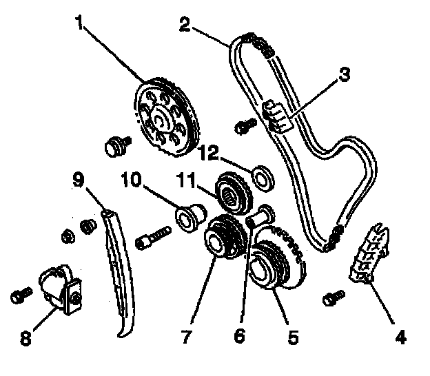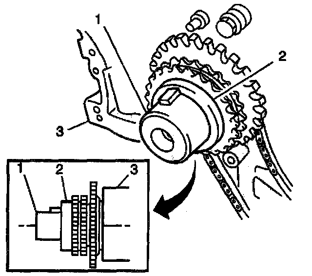8. Remove the idler sprocket (11) and the primary timing chain (2).