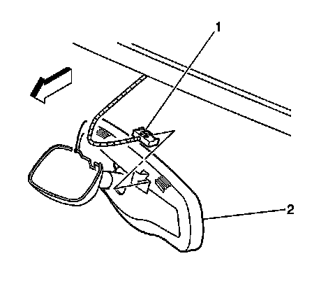 1. Use a flat-bladed tool in order to remove the wire connector (1) from the mirror (2), if equipped.