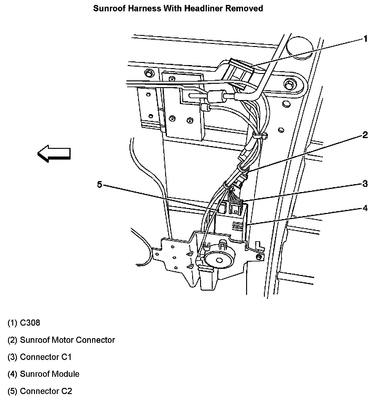 Sunroof Harness With Headliner Removed: