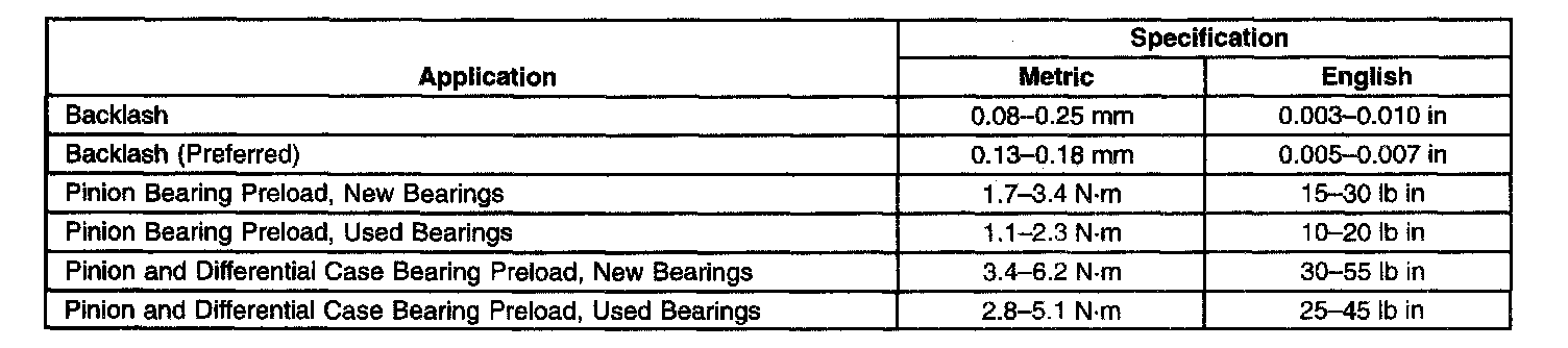 Axle Preload and Backlash Specifications