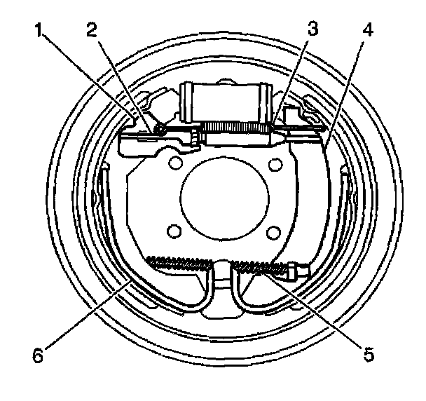 Caution: Keep fingers away from rear brake shoe springs to prevent fingers from being pinched between spring and shoe web or spring and backing plate.