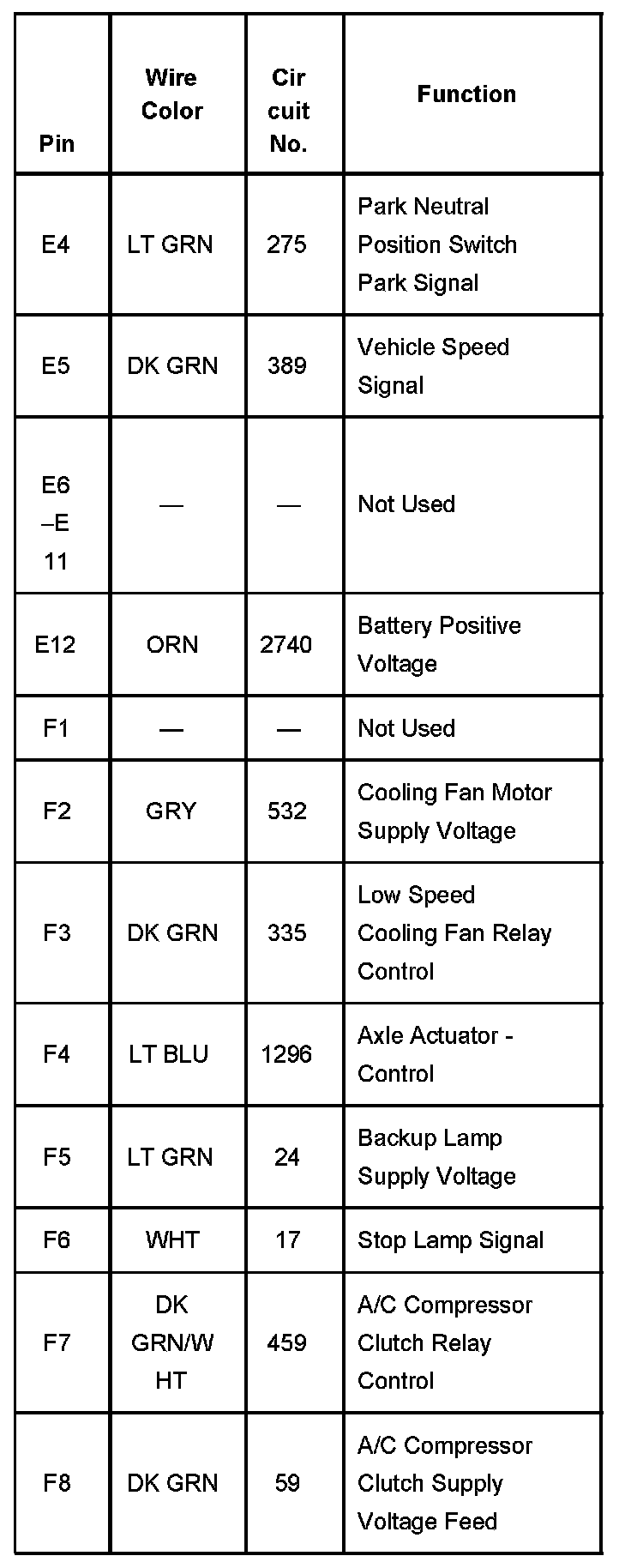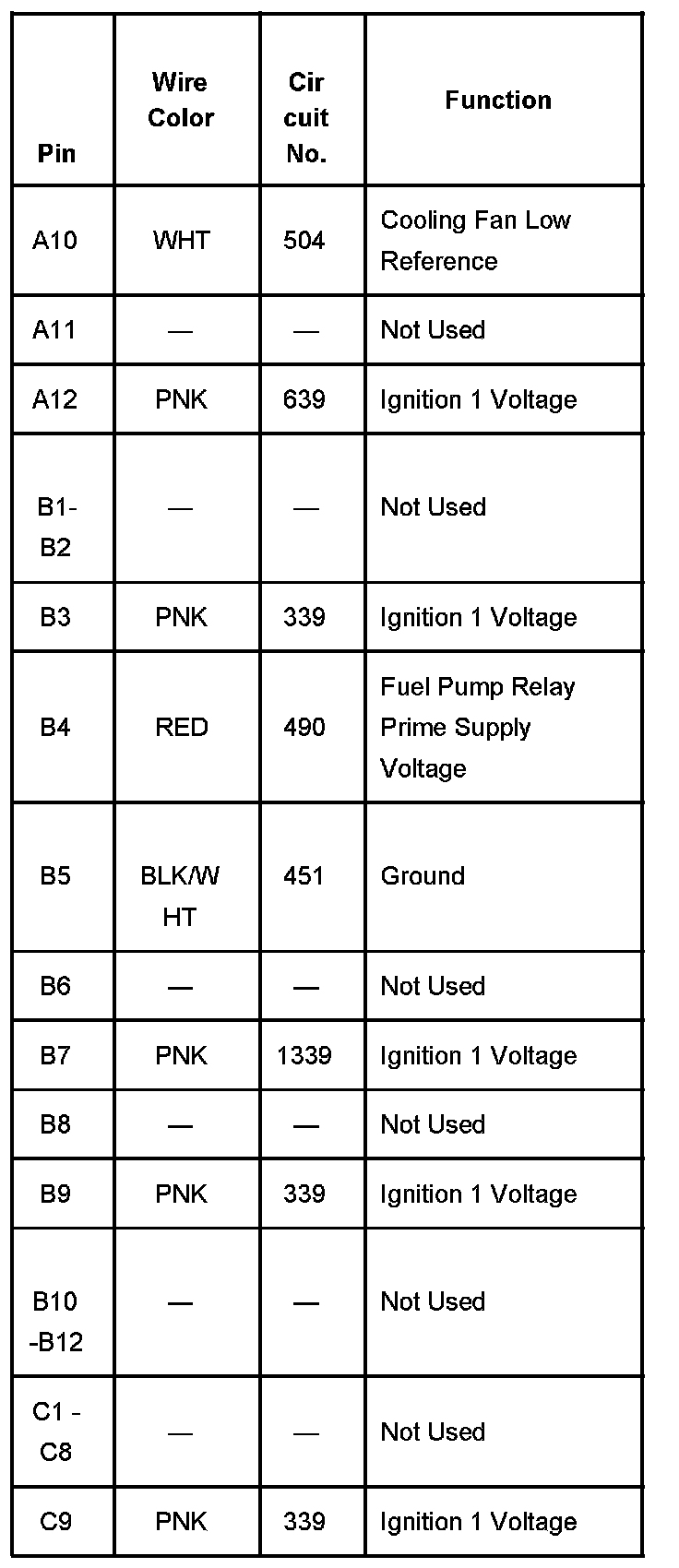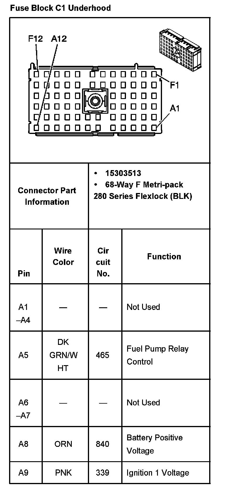Fuse Block C1 Underhood Part 5: