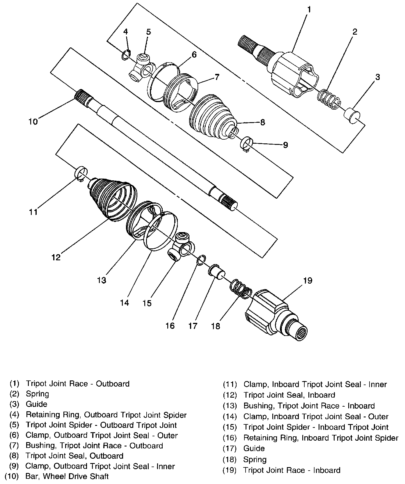Wheel Drive Shafts Disassembled Views (AWD)