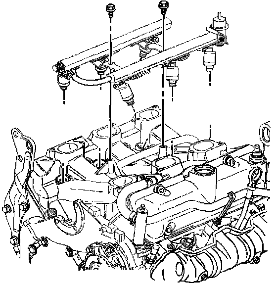7. Remove the fuel injector rail.