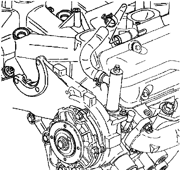 11. Disconnect the thermostat bypass hose from the lower intake manifold pipe.