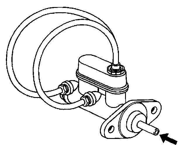 7. Using a smooth, round-ended tool, depress and release the primary piston as far as it will travel, a depth of about 25 mm (1 inch), several times. Observe the flow of fluid coming from the ports.