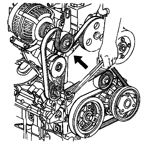 Important: Ensure that the drive belt is aligned into the proper grooves of the accessory drive belt pulleys.