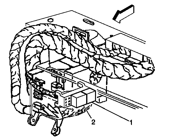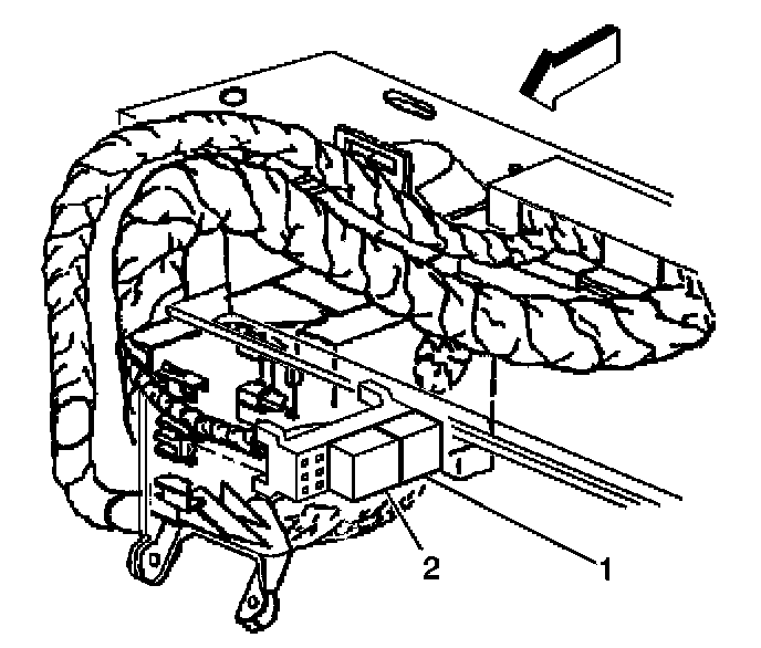 1. Install the rear window Defogger timer/relay (2) into the relay block (1).