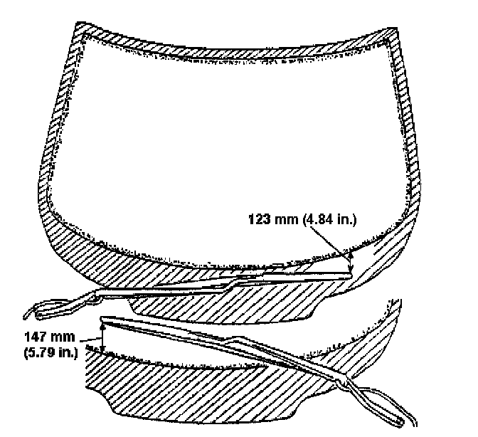 3. Measure the distance from the wiper blade tip to the solid edge of the windshield blackout. Position the wiper arms at the following distances: