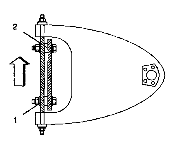 3. If the camber is not within specification, adjust the camber by changing the shims at both the front and the rear of the shaft. Add or subtract the shims (2) as required. Adding an equal number of shims at both the front and rear of the cross shaft will decrease positive camber.