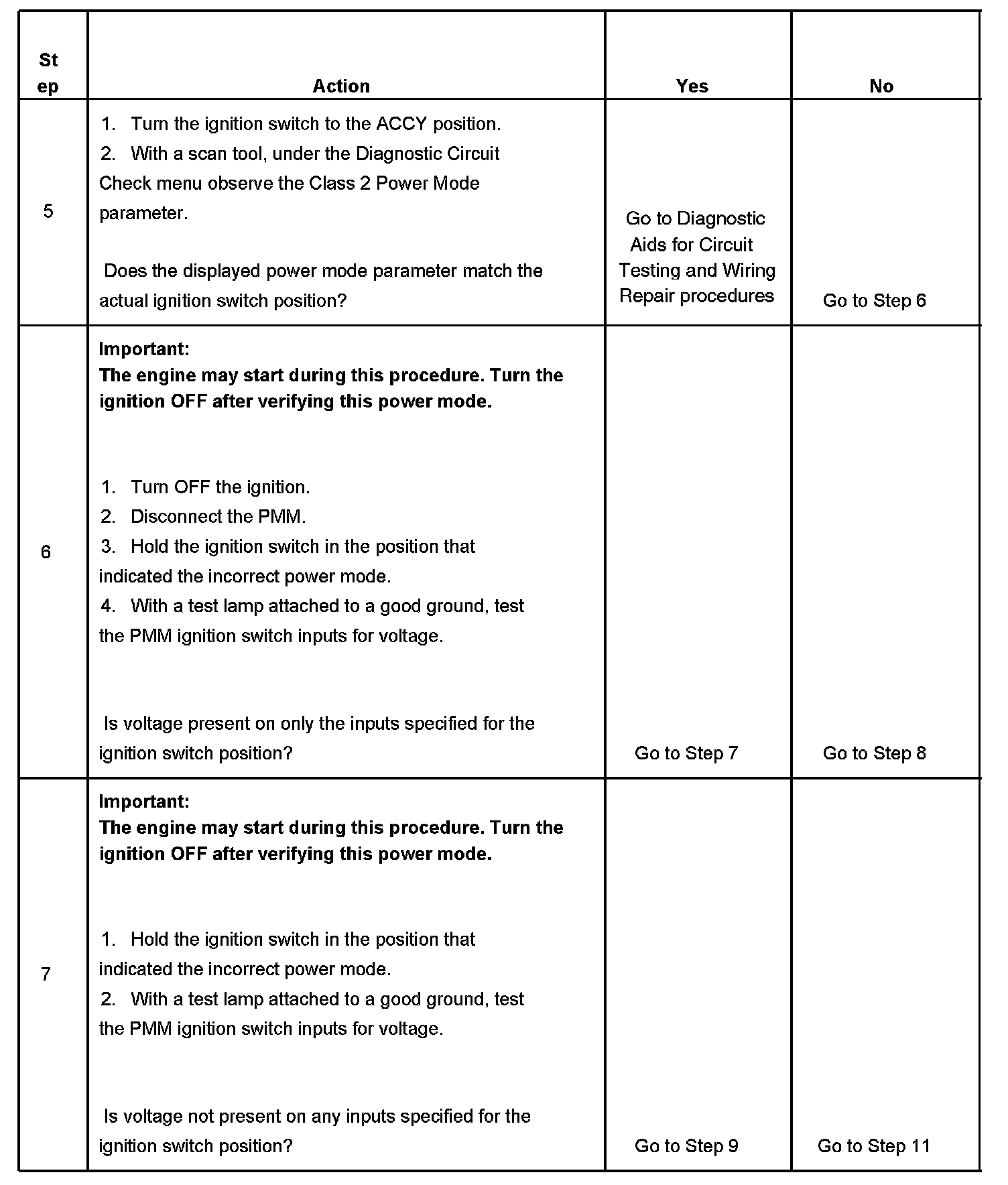 6. This step tests for battery voltage on the signal circuits that are not required.
