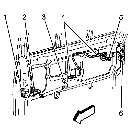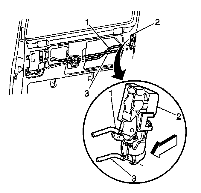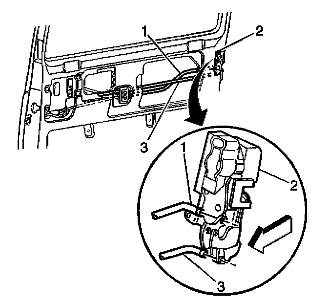 4. Remove the lock rods (1) from the lock assembly (1 and 3).