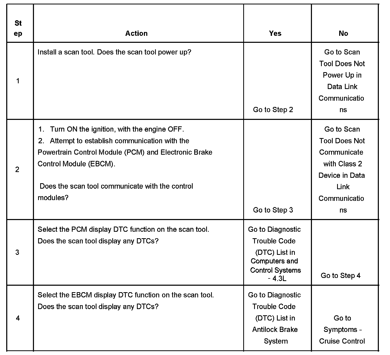 2. Lack of communication may be due to a partial malfunction of the class 2 serial data circuit or due to a total malfunction of the class 2 serial data circuit.The specified procedure will determine the particular condition.