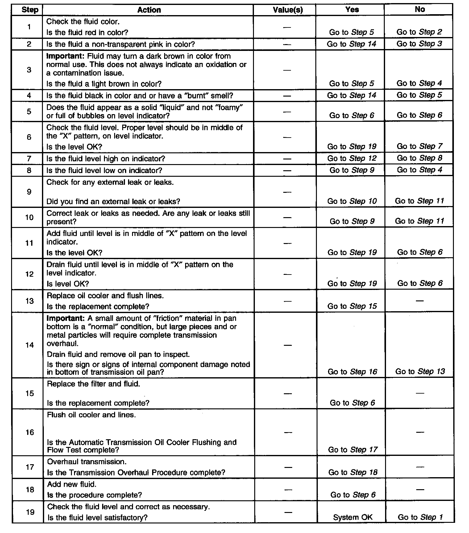 Transmission Fluid Checking Procedure1. Start the engine and operate the vehicle for 15 minutes or until the transmission fluid reaches an operating temperature of 82 - 93°C (180 - 200°F).