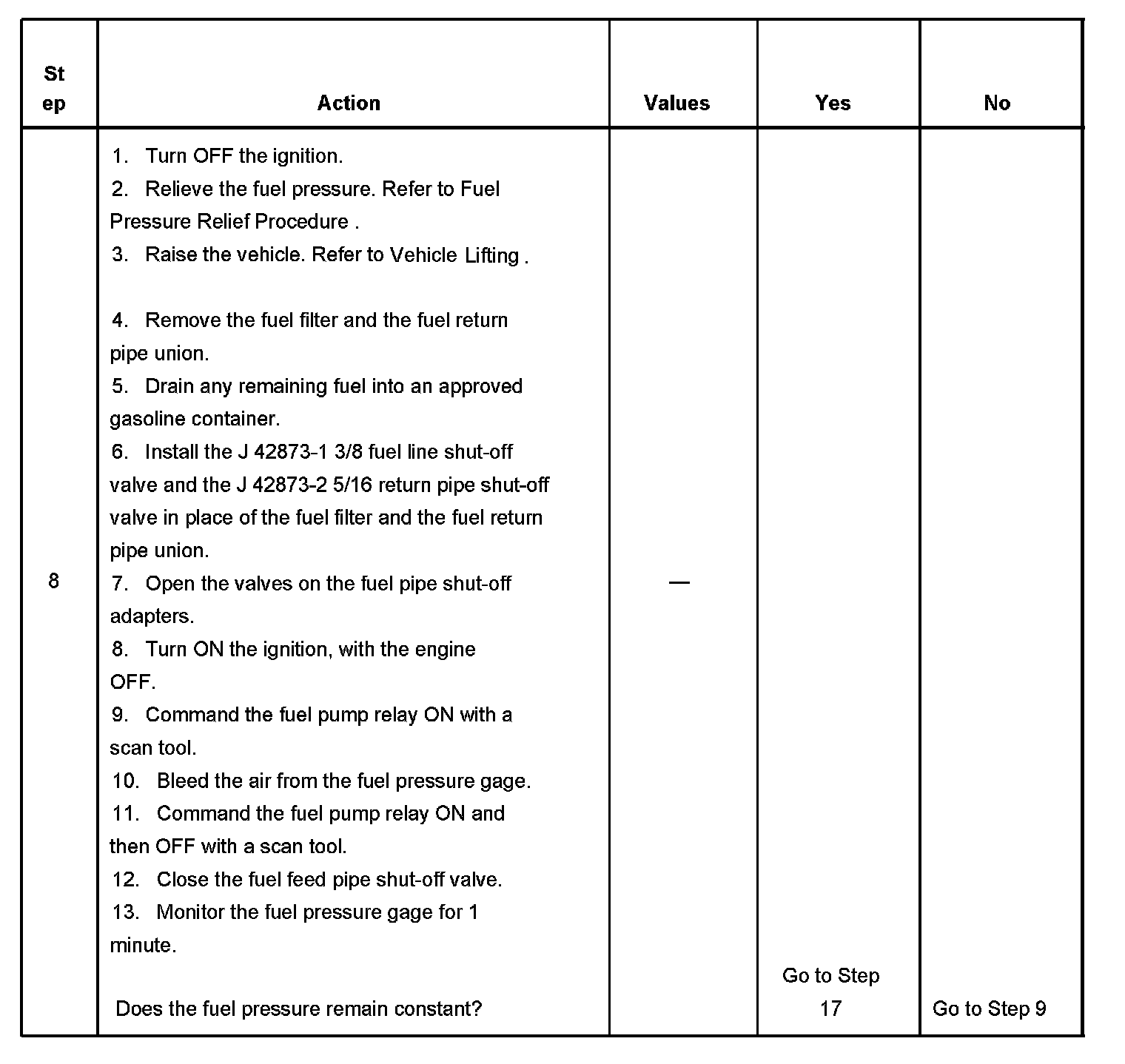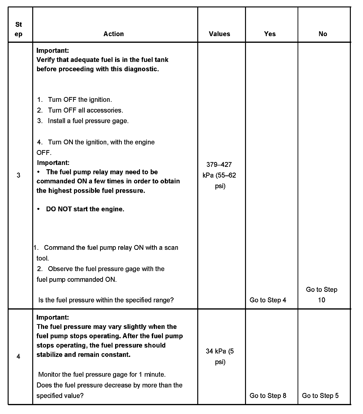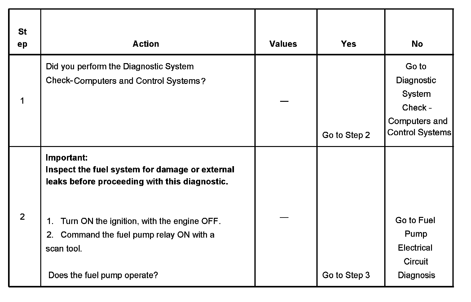 The control module enables the fuel pump relay when the ignition switch is turned ON. The control module will disable the fuel pump relay within two seconds unless the control module detects ignition reference pulses. The control module continues to enable the fuel pump relay as long as ignition reference pulses are detected. The control module disables the fuel pump relay within two seconds if ignition reference pulses cease to be detected and the ignition remains ON.