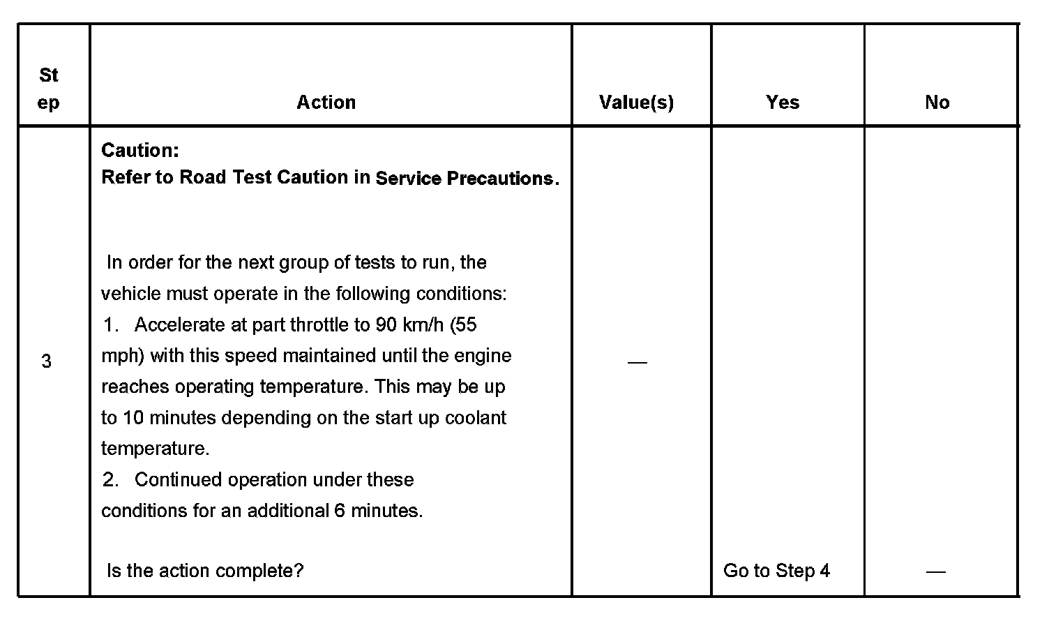 3. This step runs the EVAP, AIR and the Oxygen Sensor Tests. The EVAP Test begins once the engine coolant reaches a calibrated temperature. The AIR Test, if equipped, begins shortly after Closed Loop and the indicated speed is achieved. The Oxygen Sensor Tests begin once the engine is at operating temperature, in Closed Loop Fuel Control, and a calibrated amount of time has elapsed.