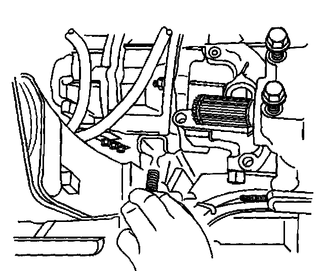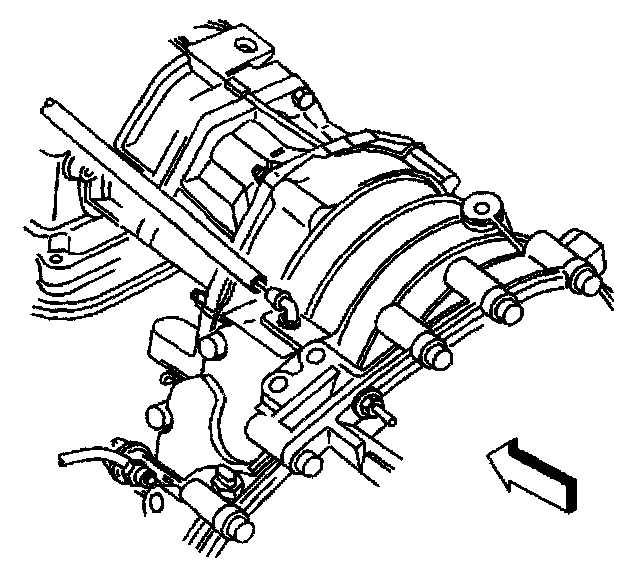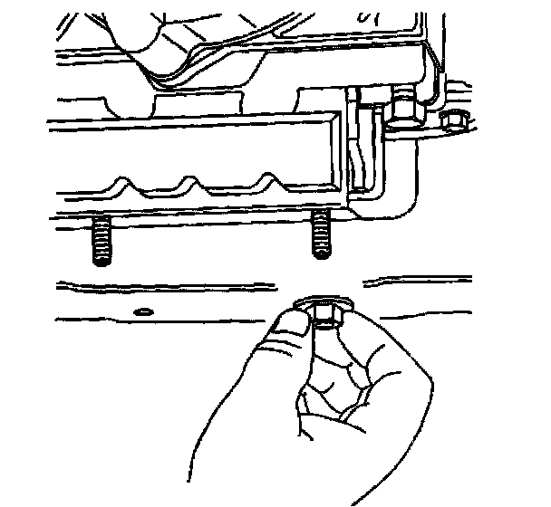 Important: The transmission mount must be replaced in it's original position to support the transmission. When reinstalling the transmission mount, it is not necessary reinstall the mounting nuts and bolts. The weight of the transmission and engine will hold the transmission mount in place until this service procedure is completed.